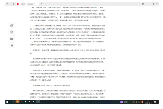 2025年12月15日,针对金强公司案件,在北京举办了专家论证会。参与论证专家有:北京大学法学院教授、行政法专家湛中乐,北京工商大学刑法学教授、刑事法专家谢安平,中国法学会立法学研究会副会长、著名行政法学家熊文钊。三位权威法律专家联合出具《法律专家论证意见书》,明确金强公司为案涉土地实质使用权人,原审判决存在法律适用错误,且南京中院复查决定作出后应按法定时限启动重审,为案件后续推进提供关键法律支撑。